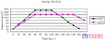 2、由于貼片膠的溫度會(huì)隨著基板零件的大小和貼裝位置的不同而變化,因此我們建議找出最合適的硬化條件。