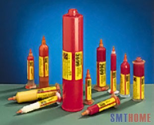 貼片膠,也稱為smt接著劑、SMT紅膠,通常是紅色的(也有黃色或者白色的)膏體中均勻地分布著硬化劑、顏料、溶劑等的粘接劑,主要用來(lái)將元器件固定在印 制板上,一般用點(diǎn)膠或鋼網(wǎng)印刷的方法來(lái)分配。貼上元器件后放入烘箱或回流焊爐加熱硬化。它與錫膏不同的是其受熱后便固化,其凝固點(diǎn)溫度為150℃,再加熱也不會(huì)溶化,也就是說(shuō),貼片膠的熱硬化過(guò)程是不可逆的。SMT貼片膠的使用效果會(huì)因熱固化條件、被連接物、所使用的設(shè)備、操作環(huán)境的不同而有差異,使用時(shí)要根據(jù)印制電路板裝配(PCBA、PCA)工藝來(lái)選擇貼片膠。