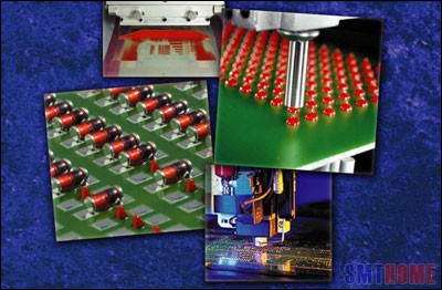 a)刮膠型:通過(guò)鋼網(wǎng)印刷涂刮方式進(jìn)行施膠。這種方式應(yīng)用最廣,可以直接在錫膏印刷機(jī)上使用。鋼網(wǎng)開孔要根據(jù)零件的類型,基材的性能來(lái)決定,其厚度和孔的大小及形狀。其優(yōu)點(diǎn)是速度快、效率高、成本低。